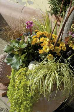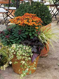 herbstliche Bepflanzung von Balkonkästen, Kübeln, Ampeln