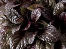 gewelltes, purpurfarbenes Laub mit dunkler Aderung ist